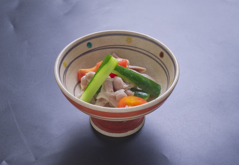 塩豚と野菜の太白胡麻油和え ■Blog小手指しみず,和食,所沢,塩豚, 2025.08.26 塩漬けした豚肉を使う。フレッシュだけが正解ってわけでもなく、塩の中で時間を過ごしてこそできる、深み、味わい。(最近、目尻に皺ができたかも。)