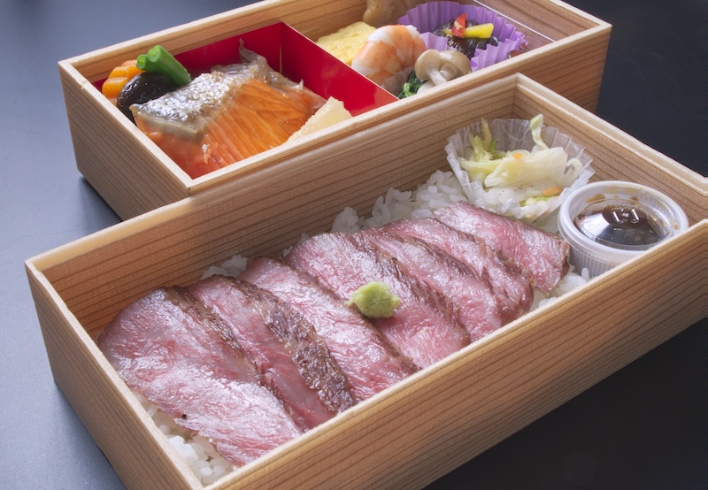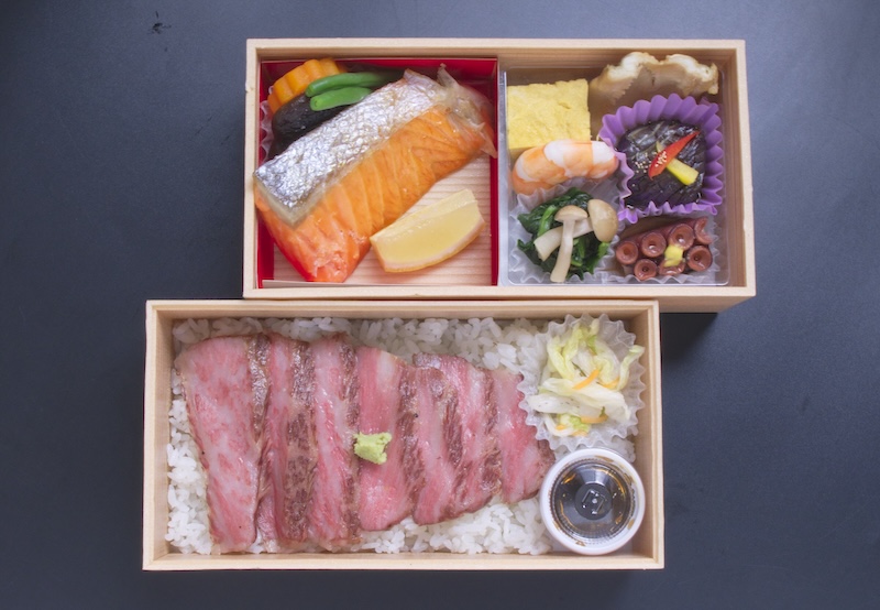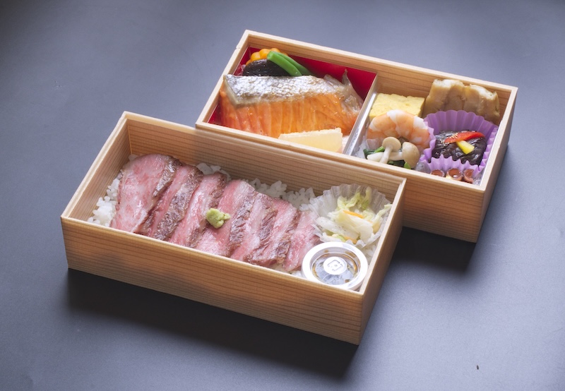 牛ステーキと鮭の二段重¥6,500(税抜¥6,019)