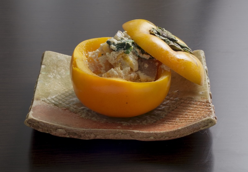 - 高野豆腐のオランダ煮(高野豆腐、絹さや、海老・玉子)
