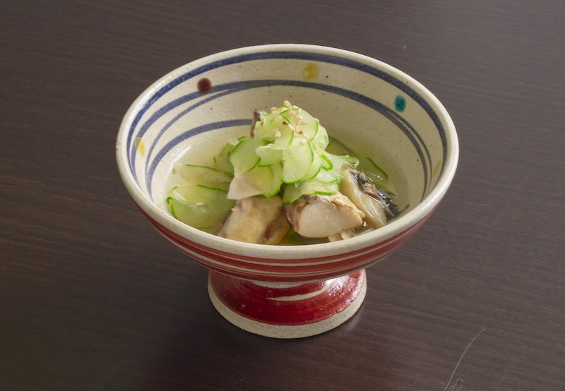 鰹出汁ベースで飲める程度の酢加減のあっさり、さっぱり酢物。
