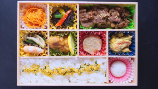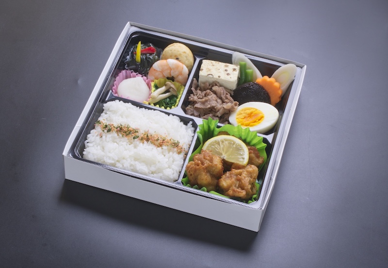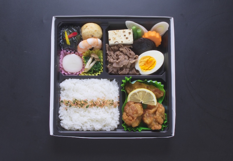 ミニすき焼きと唐揚げスタンダード弁当¥2160 法人様用仕出し弁当 2025.10.06 切り落とし牛のミニすき焼き 鳥唐揚げ 副菜/がんも、海老白煮、ほうれん草、揚げ茄子和風味、甘味団子 白米/ふりかけ一袋 ペットボトル500ml 弁当箱サイズ212×212×40