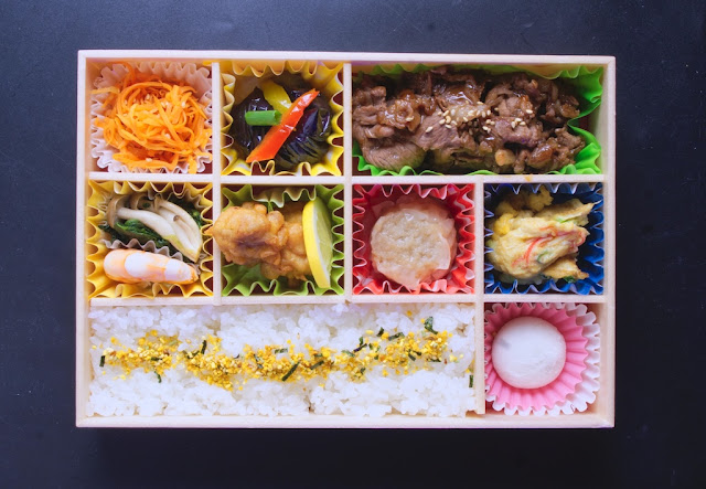 牛プルコギ・カラフル弁当¥2160 法人様用仕出し弁当 2025.10.06 牛プルコギ・カラフル弁当¥2160/お茶付き税込 牛プルコギ 揚げ茄子和風味 人参しりしり ほうれん草、海老 唐揚げ 焼売 カニカマ玉子 甘味団子 白米/ふりかけ一袋 お茶500ml 弁当箱サイズ241mm×165mm×H39mm
