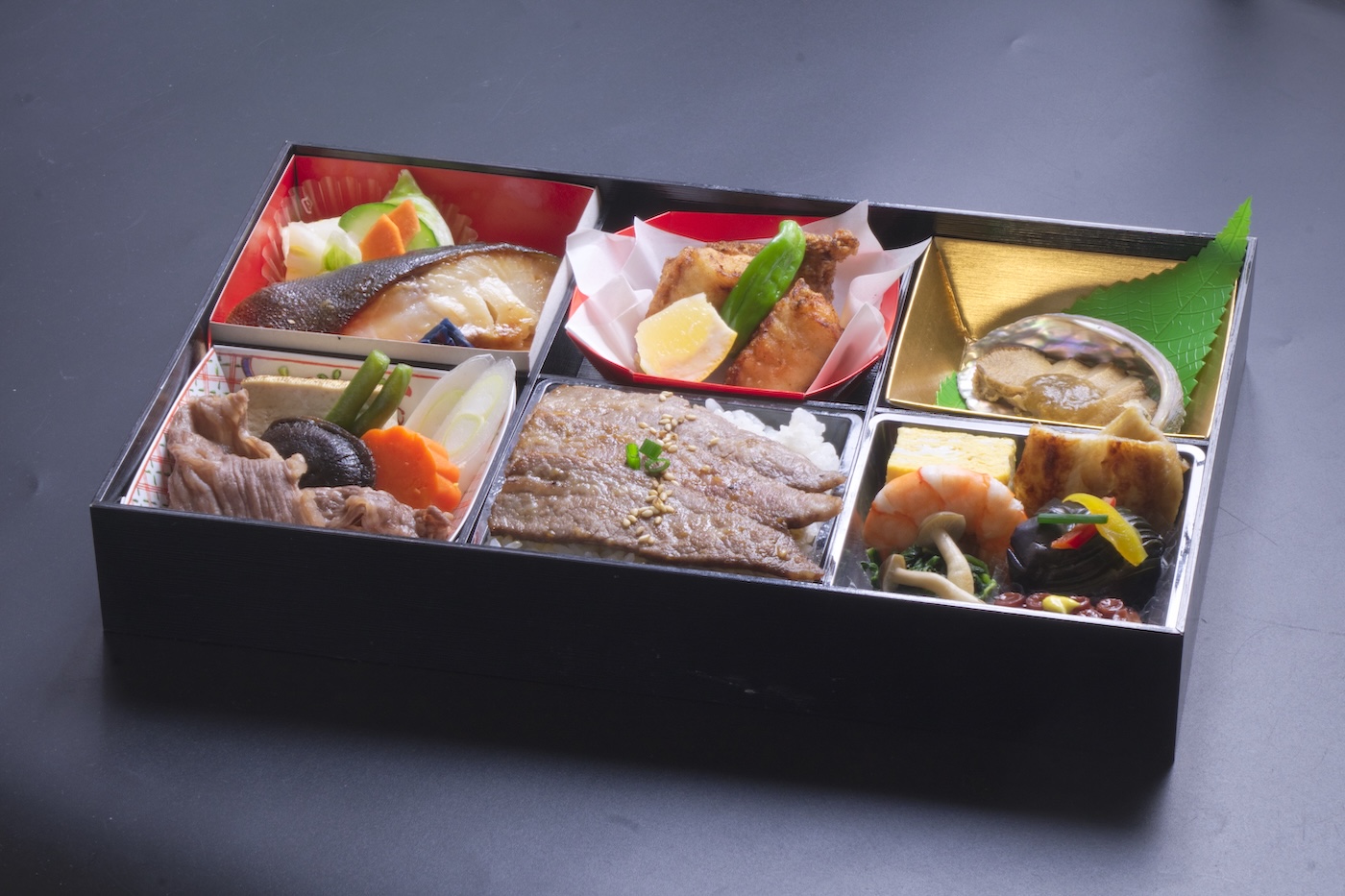 福々(ふくふく)仕出し弁当 ■仕出し弁当小手指しみず 2025.10.07 福々(ふくふく)仕出し弁当-お茶付き¥12,480(税抜¥11,556) ふぐ唐揚げ 鮑酒蒸し肝ソース 牛すき焼き メロ西京味噌漬け焼き 副菜予定(卵焼き、焼き穴子、海老白煮、法蓮草、揚げ茄子和風味、蛸柔らか煮) 白飯、牛焼肉 商談、会議などにいかがでしょう。一つづつ風呂敷に包みご用意いたします。