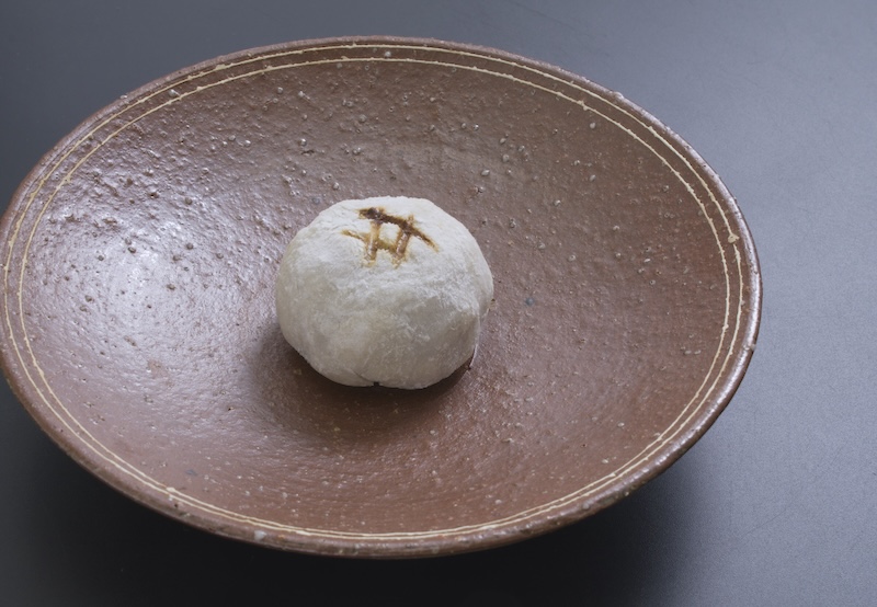 旬の里芋を裏漉した柔らかさで、刻んだ鶏の照り焼きを包みました。