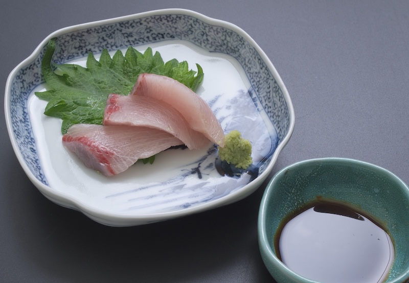 予定では冬が旬の鰤(ぶり)の刺身(上記写真)