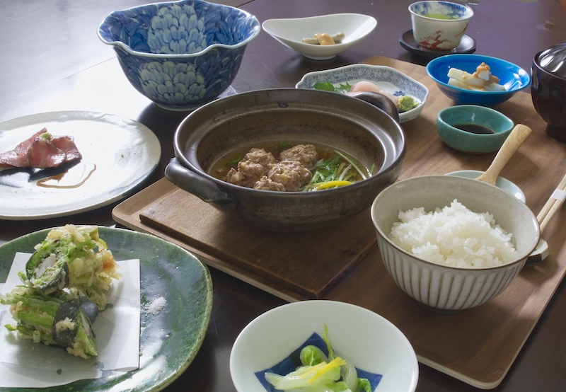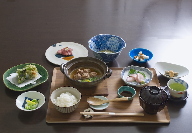 一品料理やコース的料理を織り交ぜた定食スタイル。