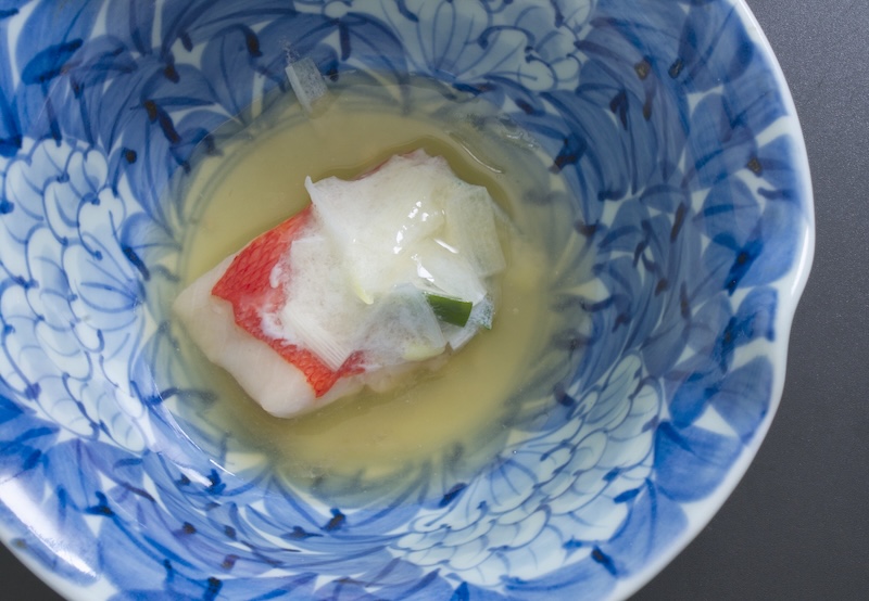 鮮やかな金目鯛と甘みが増した長葱で旬の難波蒸し。