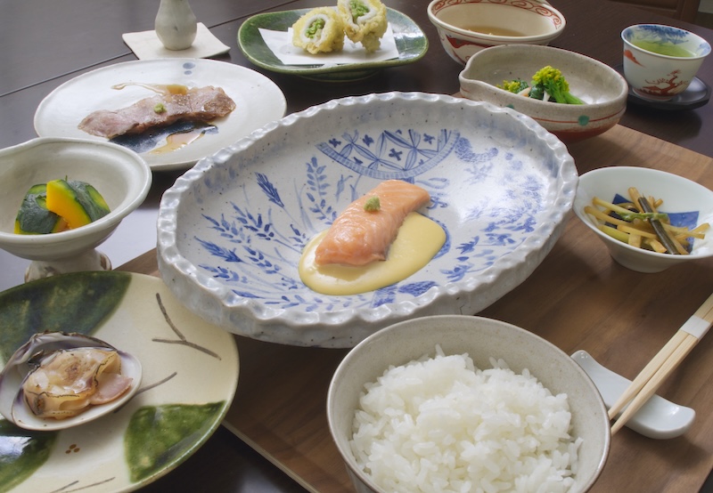一品料理やコース的料理を織り交ぜた定食スタイル。