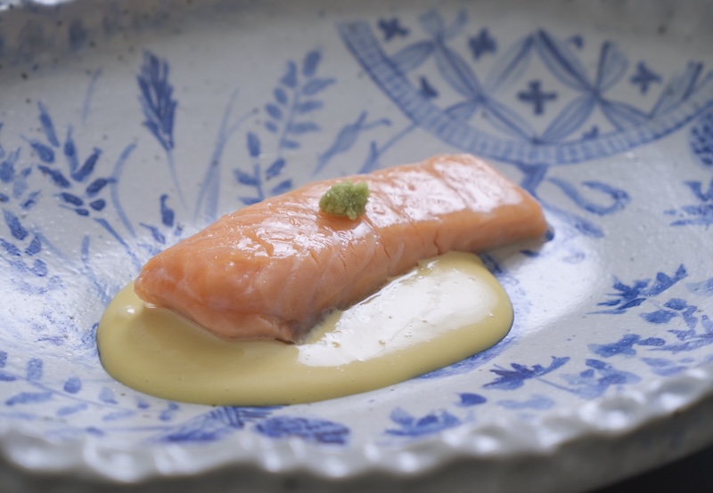 低温調理サーモン、自家製醤油マヨ