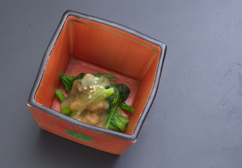 唐辛子を忍ばせて白味噌と自家製のポン酢で作った酢味噌。